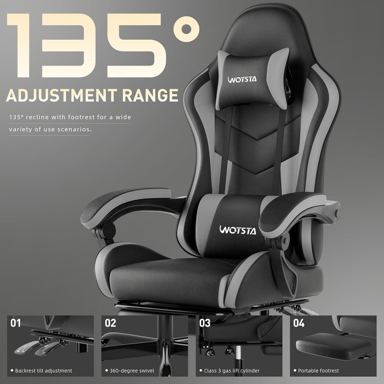 Equipped with lumbar support and a plush headrest, this chair promotes healthy posture during long hours of gaming or working. The height-adjustable mechanism allows you to find your perfect seating position, while the 360° swivel seat provides flexibility and ease of movement.